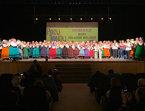 Durante el acto se rindió un merecido homenaje a la folclorista Mari Velarde Bolado, por su larga trayectoria tanto en la trasmisión del patrimonio cultural inmaterial cántabro como, sobre todo, en la enseñanza del folclore a varias generaciones a través, principalmente, del Grupo de Danzas San Pablo de Torrelavega, San Blas de la Montaña, del grupo danzas de Suances Virgen de las Lindes, de los talleres de pandereta en Toranzo, Castañeda e Ibio y de la Escuela de Folclore de Torrelavega, entre otros.