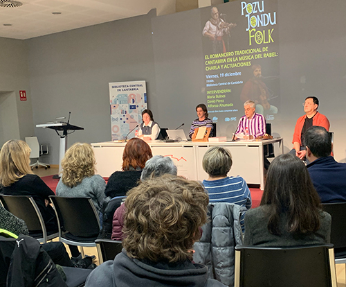 El Festival Pozu Jondu Folk finalizó con la mesa redonda titulada “El Romancero tradicional de Cantabria en la música del rabel” realizada en el salón de actos de la Biblioteca Central de Cantabria. El evento contó con la excelente aportación de María Bulnes, investigadora con una dilatada trayectoria en la enseñanza de la música tradicional de Cantabria, y los comentarios y actuaciones musicales de los rabelistas David Pérez y Alfonso Ahumada, además, de la colaboración de David Martínez con el acordeón. En el acto se habló del recorrido histórico que ha tenido la recopilación del romance en Cantabria. Aunque este proceso de recogida de la tradición oral tuvo ya en el siglo XX insignes estudiosos como el precursor Ramón Menéndez Pidal, creador del importante Archivo Romancístico Hispánico. En Cantabria, varios investigadores irán haciendo acopio de un amplio material, principalmente José María de Cossío y Tomás Maza Solano, que verá la luz entre 1933 y 1934 una publicación titulada “Romancero Popular de la Montaña”, compuesto por quinientos treinta romances distribuidos en dos tomos. A partir del último cuarto del siglo XX, la recopilación de la tradición oral se intensifica y desarrolla desde múltiples ámbitos. Estudiosos y eruditos locales, docentes e investigadores protagonizan la recopilación romancística de las últimas décadas del siglo XX y los inicios del siglo XXI. Los textos dela tradición oral cántabra se materializan en cancioneros y compilaciones romancísticas. A la importancia del valor histórico del patrimonio cultural inmaterial se une un contexto de cambios que menoscaba su pervivencia, al tiempo que potencia la importancia de su conservación. La gran obra publicada en 2009 “Romancero Tradicional de Cantabria”, a cargo de José Manuel Fraile Gil, recupera y compila el patrimonio inmaterial que supone el Romancero de Cantabria.